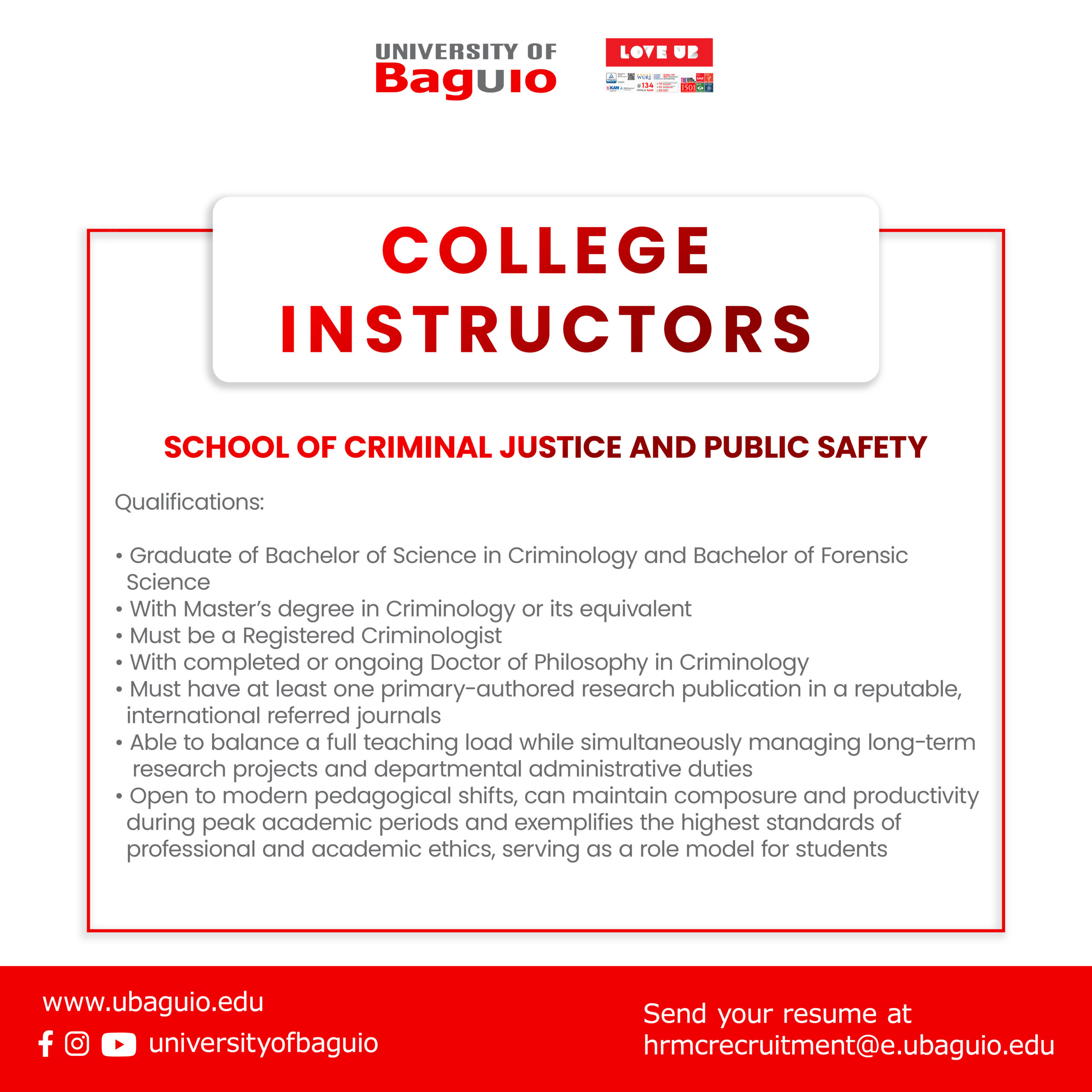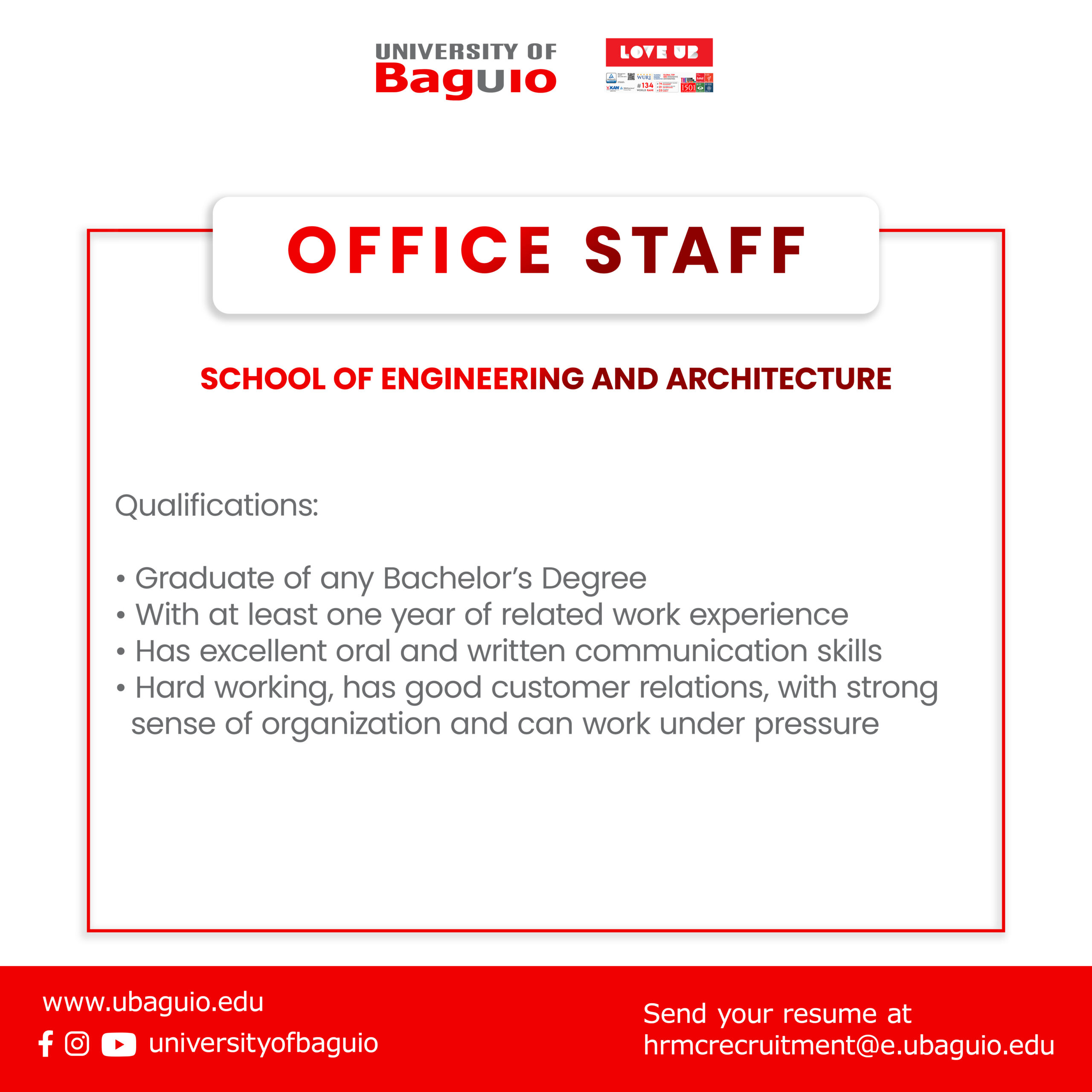 For any industry partner or UB alumni interested in submitting a job opening for your business/office/service, feel free to visit the University of Baguio’s Linkages office for more details.